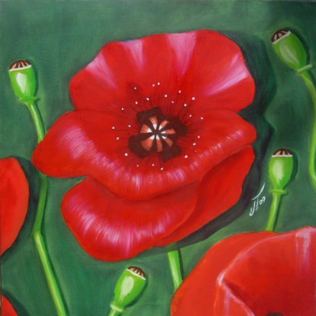 Nr. 8 Klatschmohn Aquarell-Öllasur auf Leinwand, 60 x 60 cm(verkauft / sold)